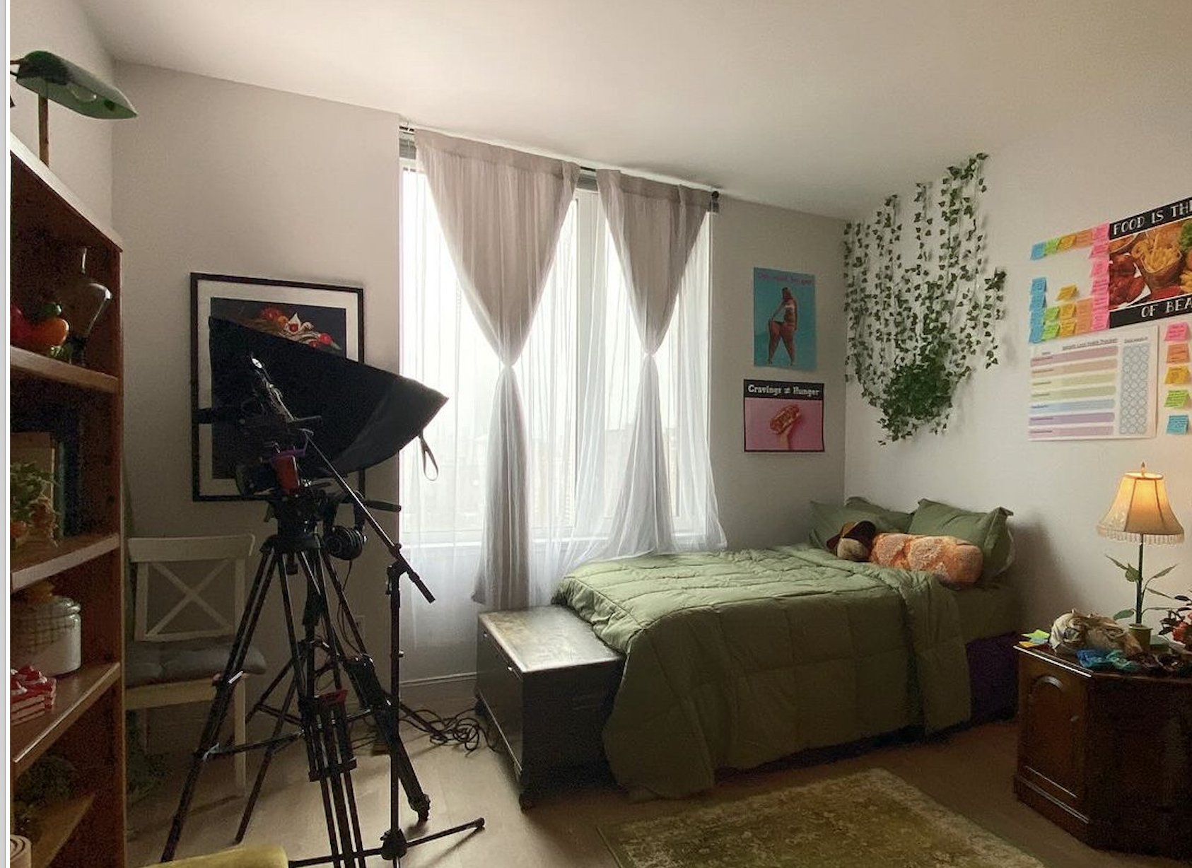 It was important to create a world that represented the character’s obsession. So the walls were filled with affirmation posters, slogans, and habit trackers.